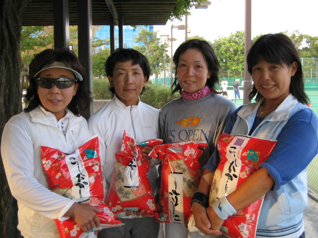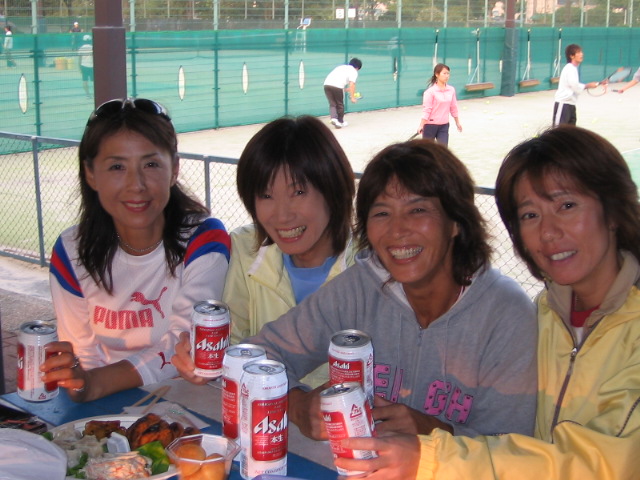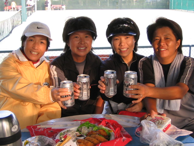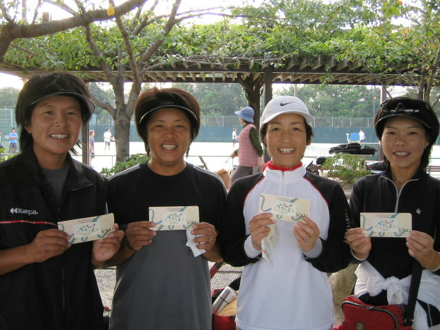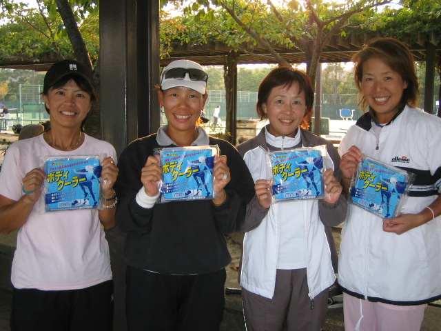今回2位トーナメント優勝 『チーム・不細工』のみなさんです。 松永さん・河崎さん・中藤さん・牛嶋さん おそろいのウェアが バッチリ決まってますね 【チーム紹介】 仲良し4人組 楽しくなければテニスじゃない! まずはおそろいのテニスウェアで おしゃれも楽しんでま〜す! |