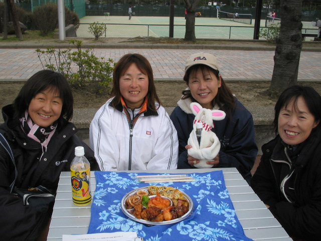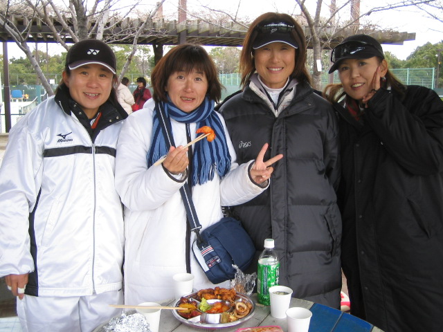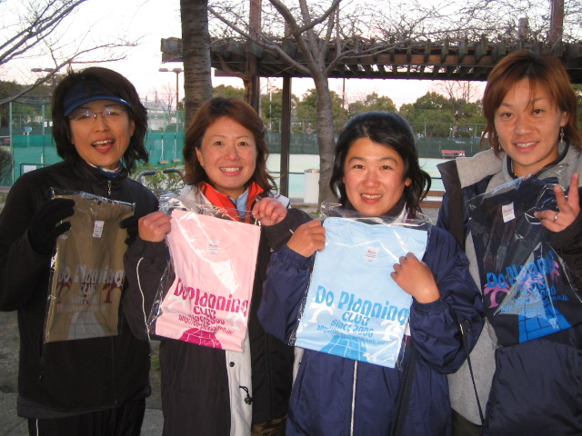 | 先日蟹合宿で一緒だったテニス仲間 ぽんちゃん!オジャキ−!ハルちゃん!辺見さん! オリジナルTシャツ Get(^_-)-☆ オ−ドブルはどうでしたか?楽しんでもらえた?! |
