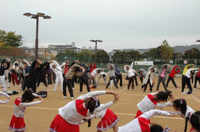 | 来賓 あいさつ 池田市会議員奥野先生 | 試合前の準備体操 |