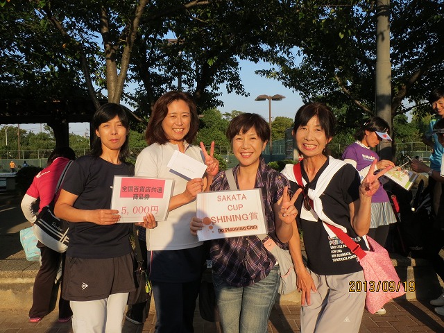 151回目SAKATACUPは新たな気持ちで試合を企画運営していこうと シャイニング賞『1番輝いているチーム』とし賞品を用意しました! 衣装&パフォーマンス豊かに今を輝かせ賞品Get!して下さい!\(^o^)/ 第1回目から皆さん素敵な笑顔で写真の前に登場!♪〜( ̄ε ̄) |